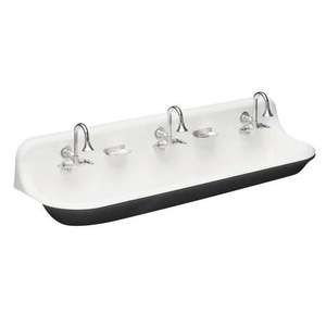 Basin Size:3' The Brockway 36' wash sink offers a classic look with Kohler Cast Iron durability. This wall-mount lavatory features drillings for two Cannock faucets and one Cannock soap dish. Offered in white.Note: Faucet and soap dish not included; see accessories.